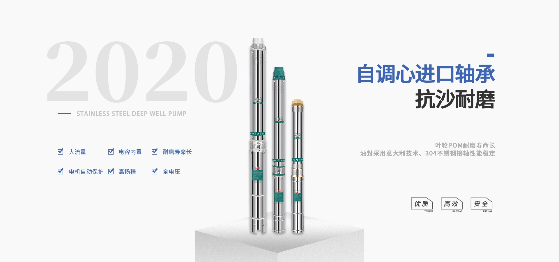 公司始終站在深井泵行業(yè)的前端位置,科研力量、產(chǎn)品和設(shè)備技術(shù)水平均達到國內(nèi)優(yōu)質(zhì)水平,公司始終堅持走科技興企、自主創(chuàng)新的企業(yè)發(fā)展之路,產(chǎn)品不斷推陳出新,可廣泛應(yīng)用于農(nóng)業(yè)灌溉、生活用水、循環(huán)供暖、污水處理、市政供水、石油化工、冶金礦山等領(lǐng)域。